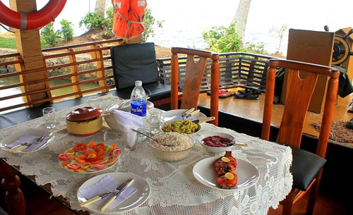 » 17:30 hrs The houseboat will anchor (till next day morning 08: 00) most of the time we will stop near the land because, you can also get a chance to go out and walk along the riverside or villages and come back, Evening Enjoy your Dinner and leave all world behind you and have a good sleep in your floating paradise.